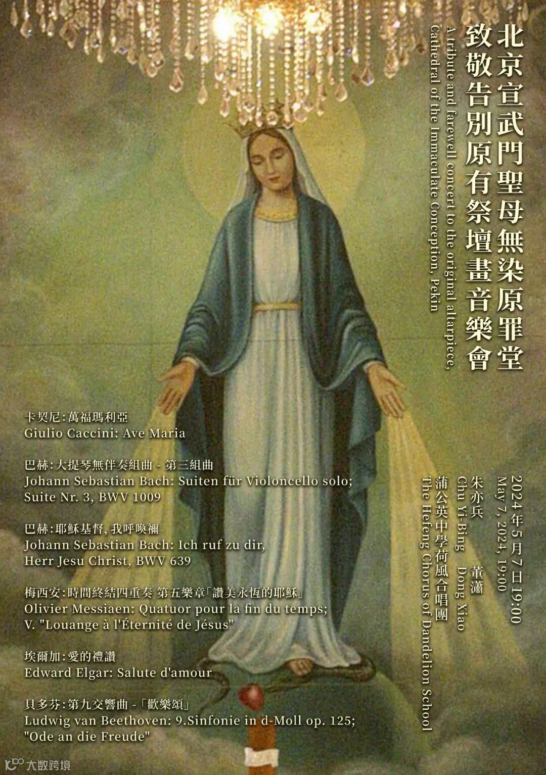 新的祭壇画即将于二期修缮中与大家见面,在五月这个特别的月份里,为了致敬告别原有祭壇画《圣母无染原罪像》,堂区安排了这次特殊的音乐会。