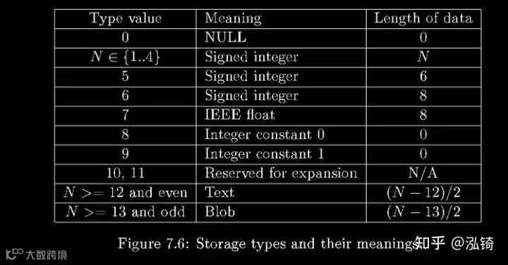 在大小字段之后,表头包含每个列一个类型字段,顺序与语句中声明的顺序相同CREATE TABLE。SQLite 内部从不重新排列列顺序。