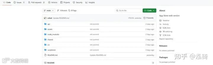 这个小小的疏忽,被一位充满探索精神的热心网友发现,并顺势将整个 Web 端的源码“扒拉”了下来,直接上传到了 GitHub。短短 18 小时内,这个名为 “apps.apple.com” 的仓库便斩获了 6.2k Star 和 5.7k Fork,成为了当天最火爆的“开源”项目之一。