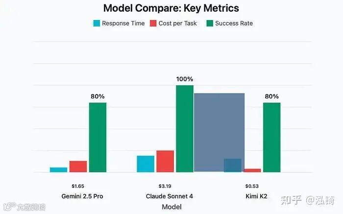 Kimi K2:擅长识别其他模型遗漏的性能问题和代码质量问题。构建了功能特性,但偶尔需要澄清提示才能完成全部工作。对于迭代开发来说,每个任务 0.53 美元,性价比很高。