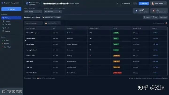 这是我用于测试的库存管理仪表盘。多个用户可以使用 Velt 实时评论或提出修改建议。