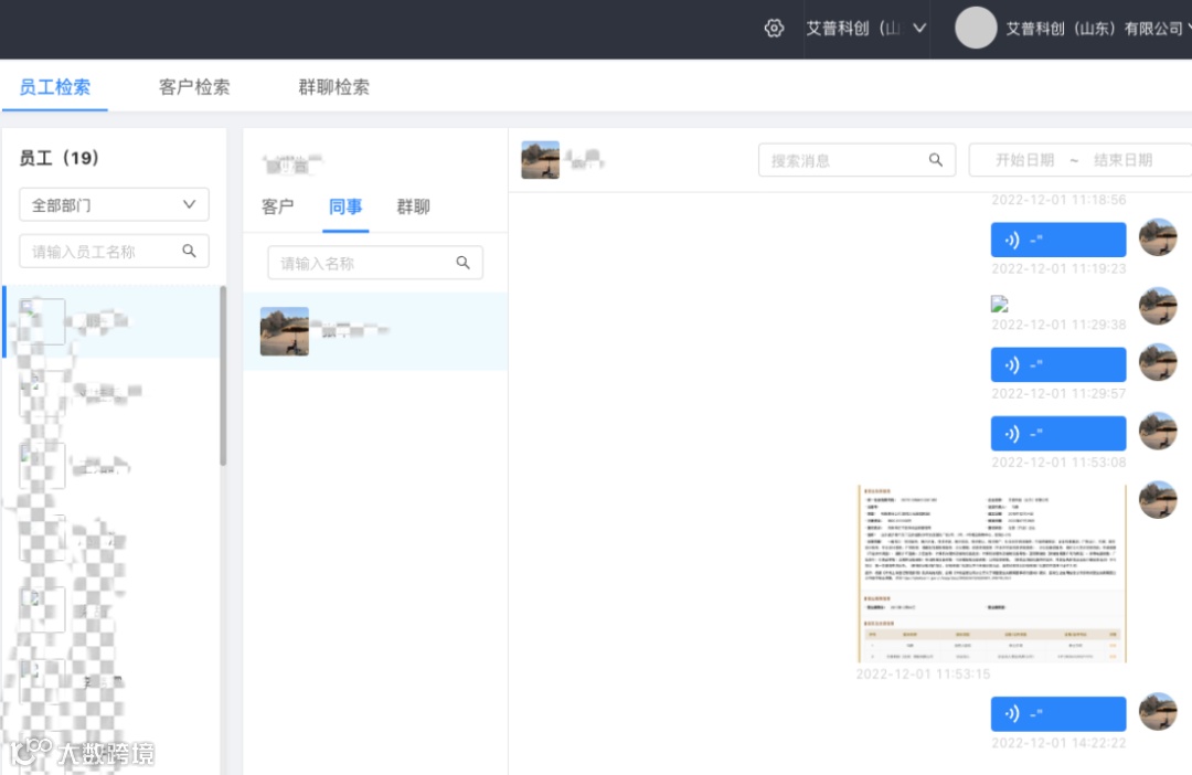 5.风控管理:消息存档,自动识别敏感词汇,规范销售行为;客户流失、销售删客户及时提醒;销售超时未回复,及时提醒,提升客户满意度。