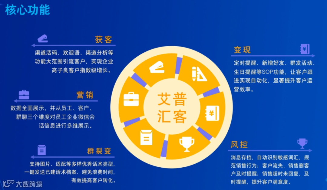 1.引流获客:艾普汇客SCRM系统能通过渠道活码、欢迎语、渠道分析等功能大范围引流客户,实现企业高质量客户指数级增长。