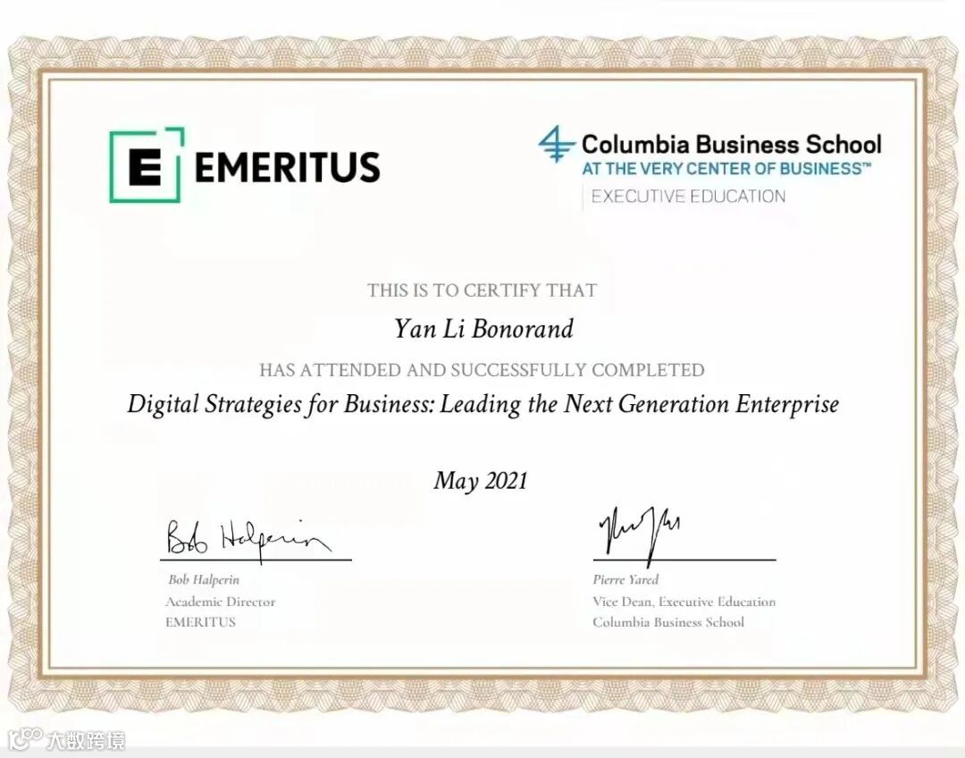 HG创始人Jessica本年度收获哥伦比亚大学商学院“数字化策略”专业毕业证书 。为客户提供数字化转型的专业咨询服务。