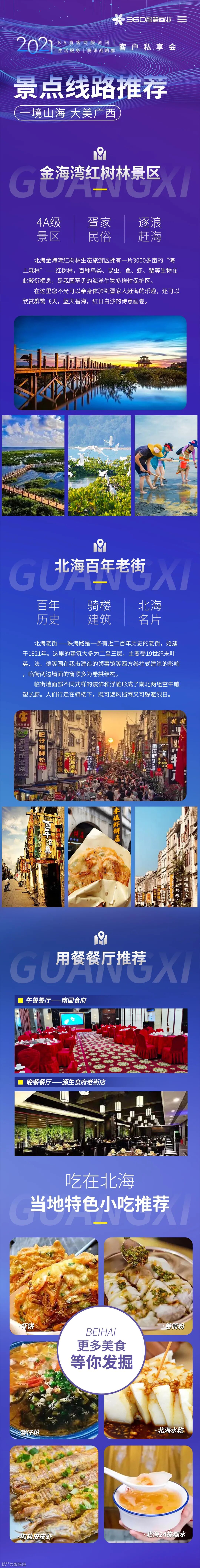 2021年9月10日,360智慧商业召开2021智动未来,聚势前行客户私享会在北海皇冠假日酒店圆满举办,此次会议经过2个月的筹备,会议期间发布了2021年360网服行业用户洞察研究报告,以及对智动未来的信心,活动期间各位嘉宾在主办方的精心呵护下,从会议到观光,度过了愉快的3天,期待2022再次重聚!