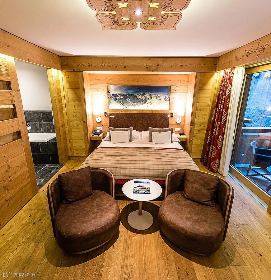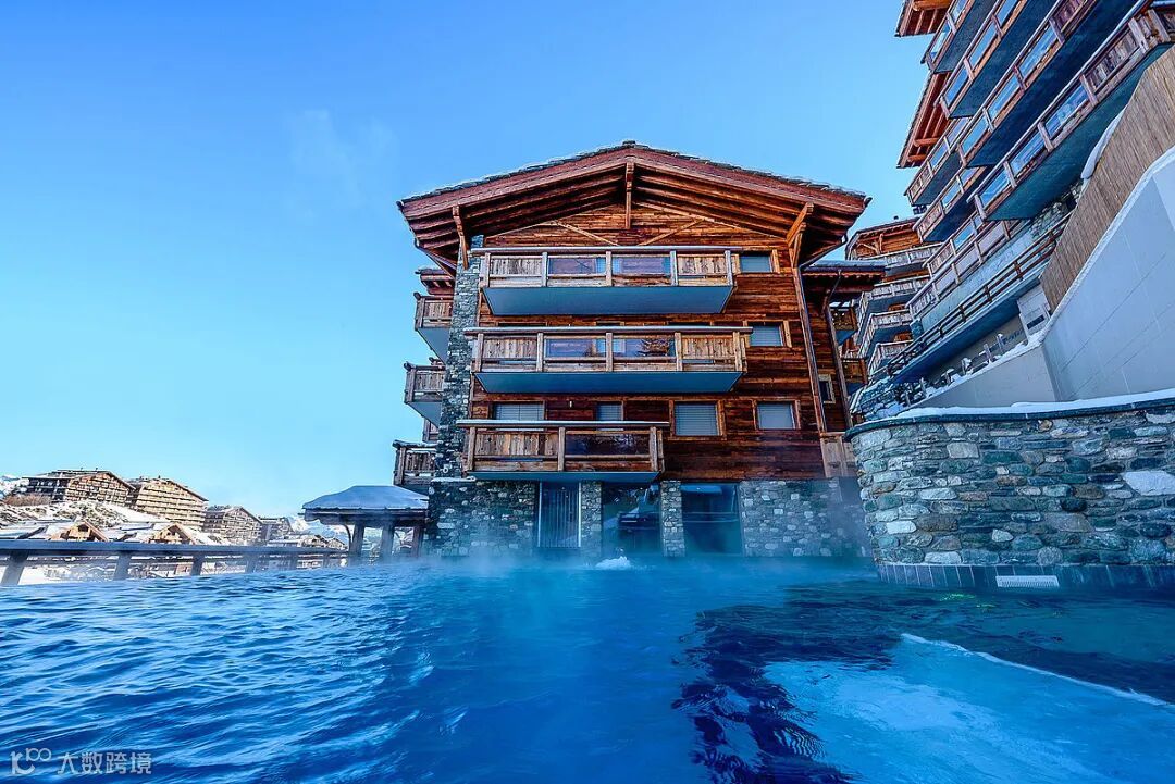 它跟Rifelalp2222一样,在冬日雪季时是可以滑进滑出的酒店,早上起来,绝对可以当第一个刷雪道的人;下午滑玩想休息放松一下,这里有户外正对着马特宏峰的按摩浴池,可以坐享超级绝美的阿尔卑斯山大景!