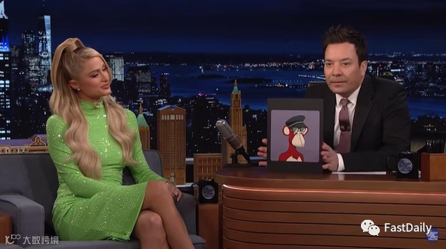 今天,无聊猿在流行文化中随处可见,从 Old Navy 出售的 T 恤到Snoop Dogg和Eminem拍摄的VMA提名音乐视频。像Steph Curry、Justin Bieber、Gwyneth Paltrow、Post Malone和Seth Green这样的名人都拥有无聊猿。其他高调的持有者包括Jimmy Fallon和Paris Hilton,他们在今年1月份的The Tonight Show上就他们的猿猴进行了一次备受争议的交流。(Solano和Aronow说他们事先并不知道Fallon的那段话,他们认为上节目讨论是 “非常超现实的”。)