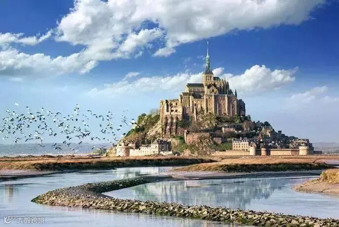 圣米歇尔山位于法国诺曼底附近,距海岸约1公里的岩石小岛,为法国旅游胜地,也是独一无二的天主教徒的朝圣之地。由远眺到近观,圣米歇尔山都让人惊叹,而它映在圣米歇尔海湾的倒影俨然成为另一个幻境。特别是山、水、光、云相互映衬的绝美景色,一定会让您不虚此行。山顶还有被列世界文化遗产的绝美修道院。