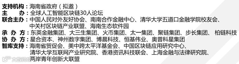 全球人工智能区块链30人论坛(以下简称:三十人论坛)由淳大集团董事长柳志伟,火币集团董事长李林,太一云科技董事长邓迪,聚链集团董事长张寿松,大三生集团董事长徐远重等企业家共同发起创立。 致力于构建以人工智能为主线,以人工智能和区块链结合领域应用为重点的跨界合作新型平台,通过“人工智能+” 、 “区块链+” 等科技金融手段推动实体经济转型升级、 为全球产业的发展和技术创新全方位赋能,推动中国企业沿着一带一路倡议逐步走向全球化。