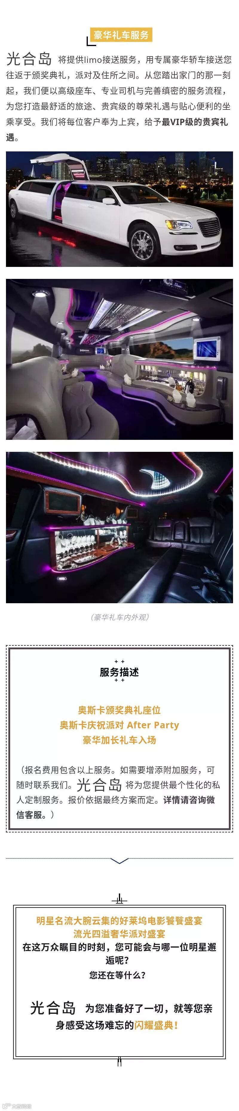 费用包含:美国签证+邀请函+加长林肯接送