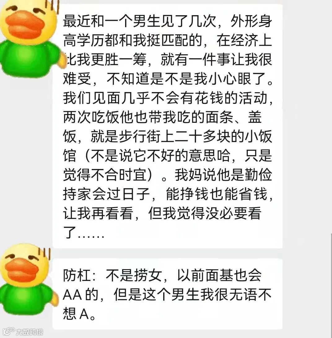 投稿简介:我们见面几乎不会有花钱的活动,两次吃饭他也带我吃的面条、盖饭,就是步行街上二十多块的小饭馆。我妈说他是勤俭持家会过日子,能挣钱也能省钱,让我再看看,但我觉得没必要看了……