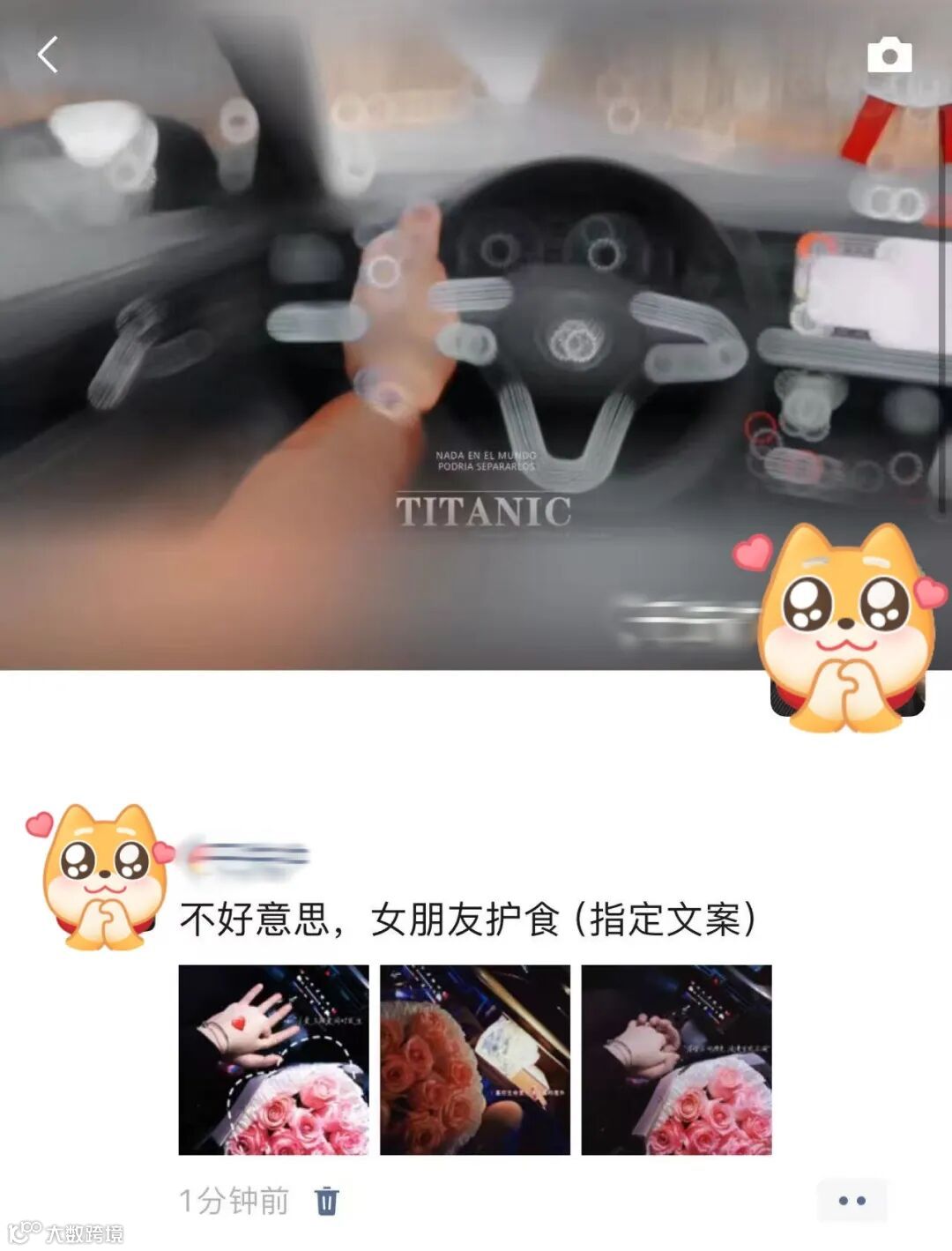 后来他也没有放弃,是真诚打动了我,之后一周的周六他回老家买的排骨,在家里做完,驱车150公里,给我送到我家楼下,说好吃让我尝一尝,当时我就觉得这人也太实在了吧,然后再下一周休息我们约了看电影,他在中途出门说上厕所去,然后拿了一束花回来,说可以做我女朋友么🥳,然后跑去吃饭,到家的时候让我发来副驾驶手扣,里边还有花花和礼物,当时感觉这就是命定的人吧,满足我所有对恋爱的美好幻想!
