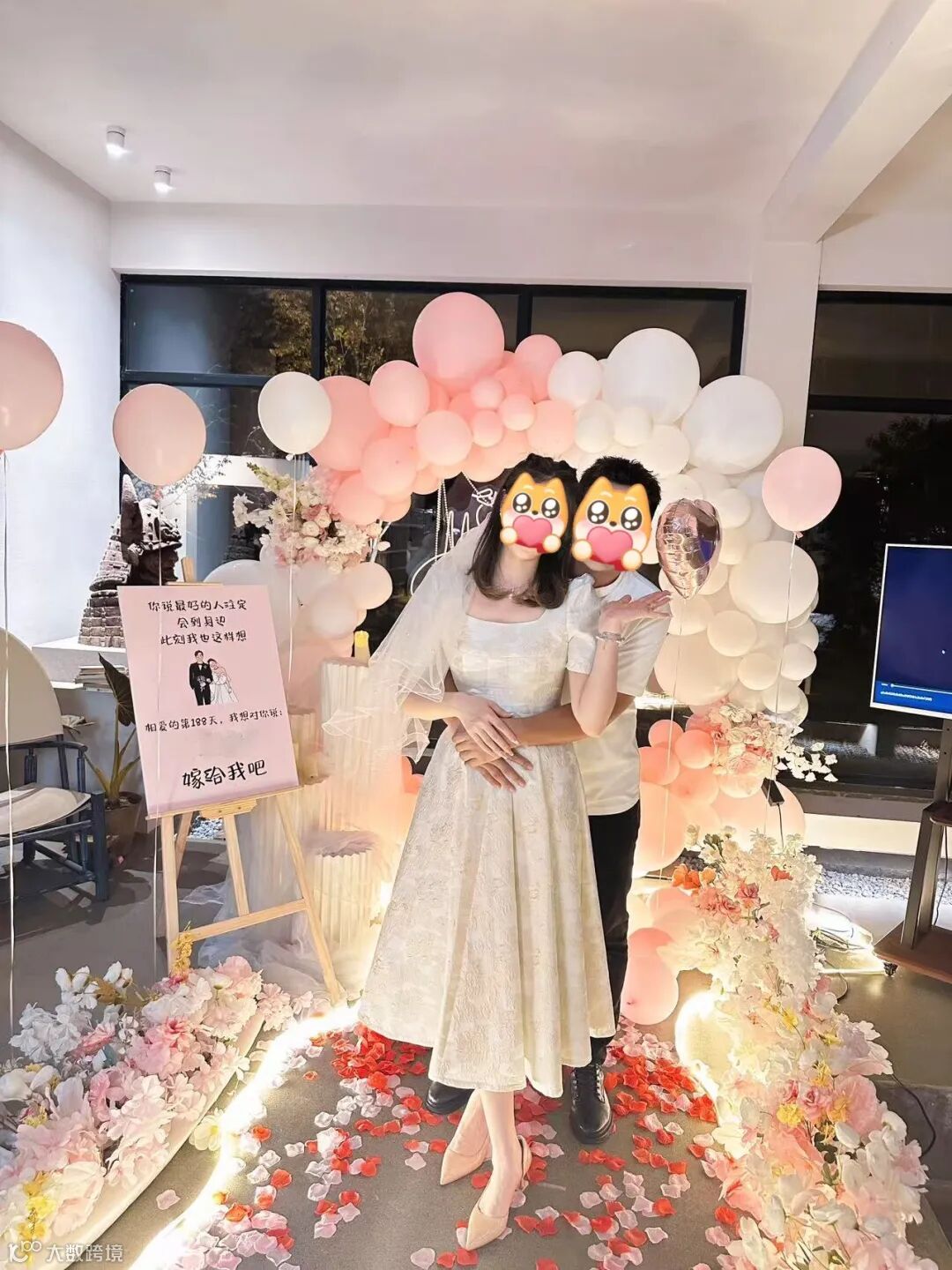 2024.10.5被求婚的,他偷偷联系了我的朋友和我的家人们,让我朋友约我假装我们出去拍照,然后到地方了才发现门口站的是我姐和姐夫,在一个小别墅里,布置了我最喜欢的粉色,当时我都傻了,但我忍住不能流泪,我们在拱门前对视的时候,有一种一眼万年的感觉,肚子里的蝴蝶就都在往出跑了,我想这辈子就是你了!