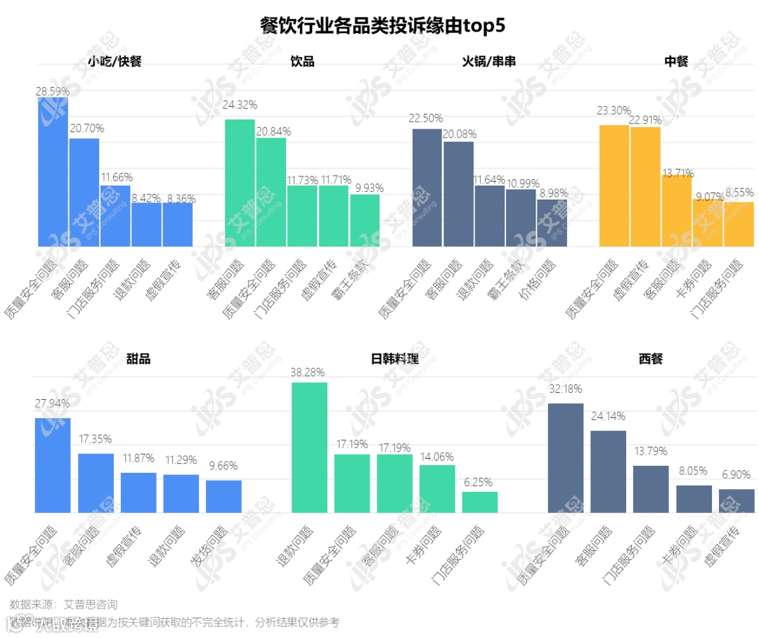 近期,艾普思咨询分析了国内主流投诉平台上的餐饮投诉数据,从投诉缘由、投诉要求、涉诉金额、被诉品牌等多个方面洞察餐饮消费投诉现状。