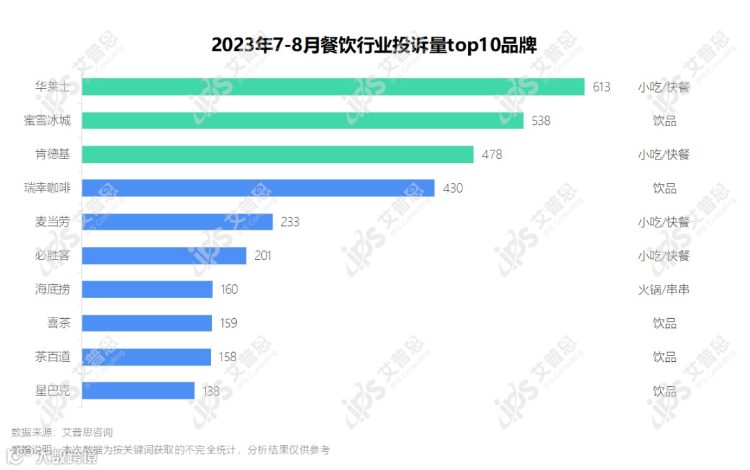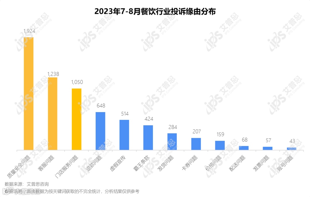 以上内容节选自《艾普思咨询:2023年7-8月餐饮消费投诉洞察报告》(全文14页,约2,584字)。