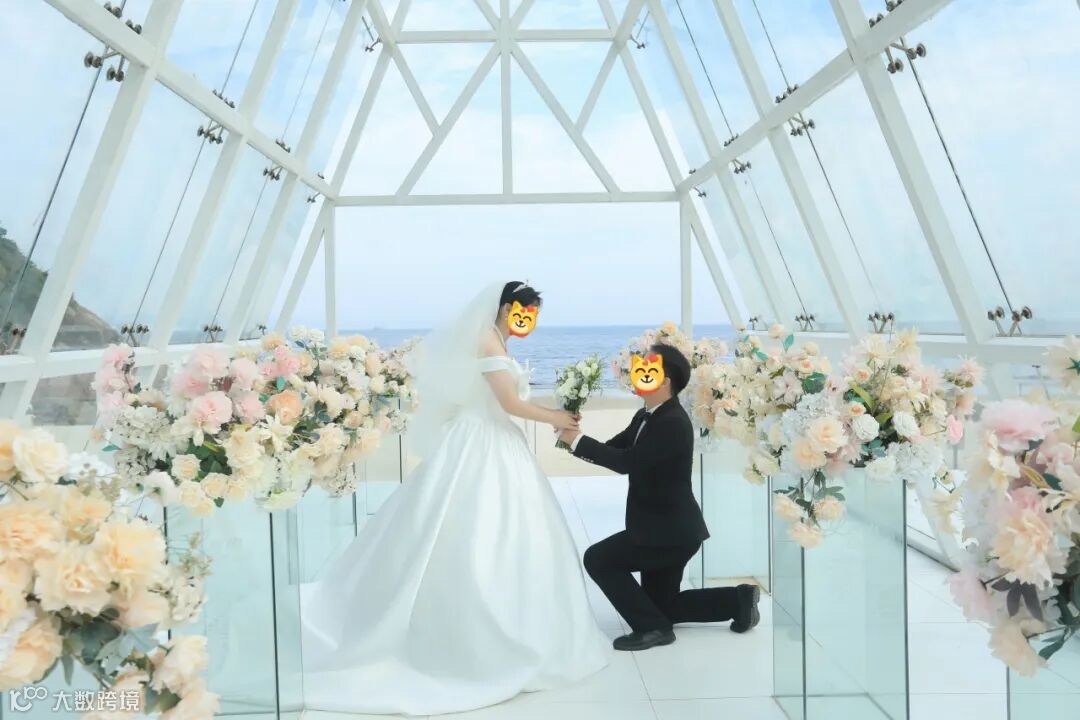 求婚形式是店员把奶茶端上来时一并把花送过来,同时他把戒指拿出来,然后单膝下跪求婚。
