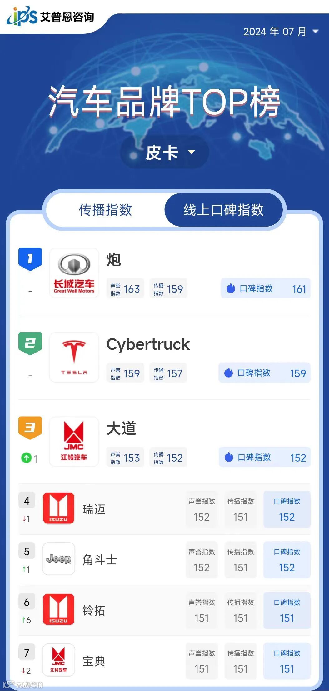 皮卡线上口碑指数TOP10