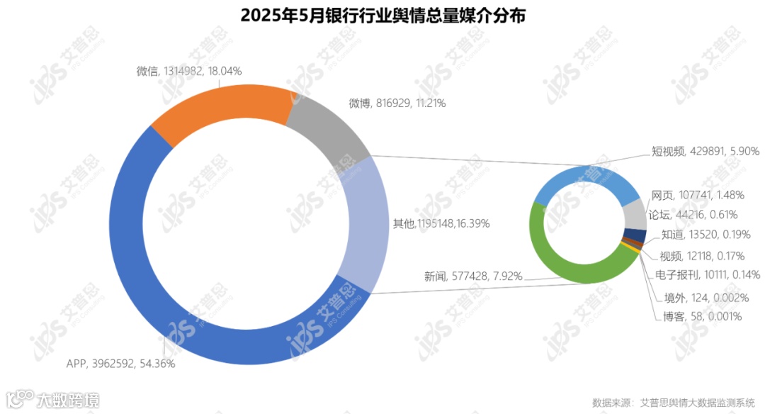 图3:2025年5月银行行业舆情总量媒介分布