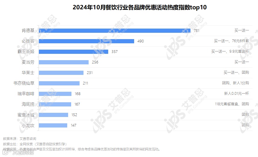 图1.2024年10月餐饮品牌优惠活动热度指数top10