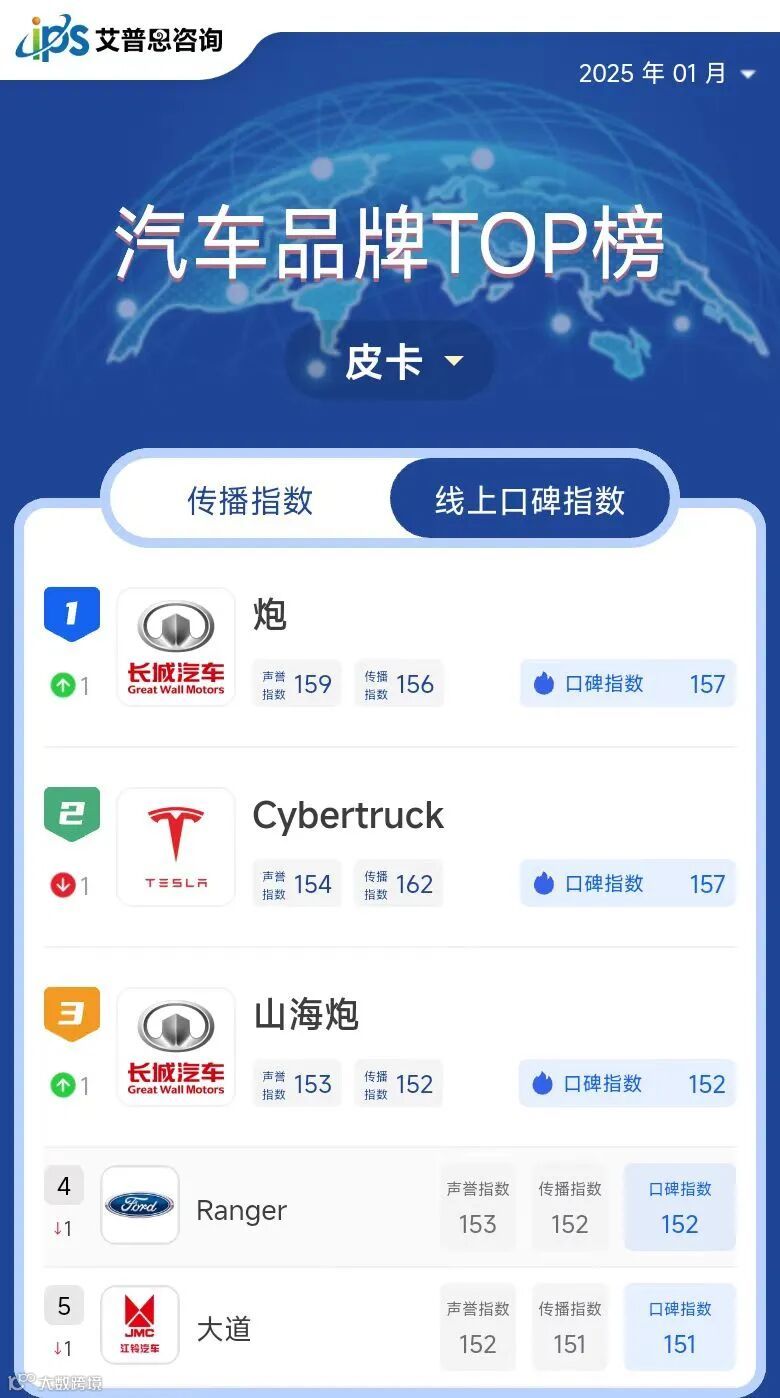 皮卡线上口碑指数TOP10