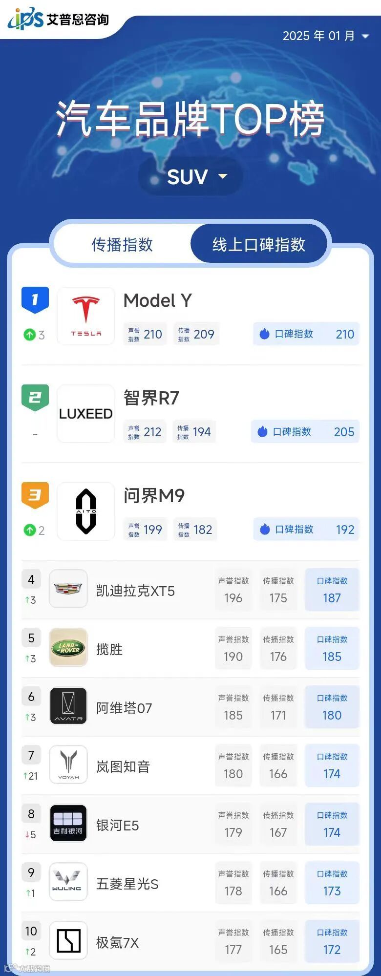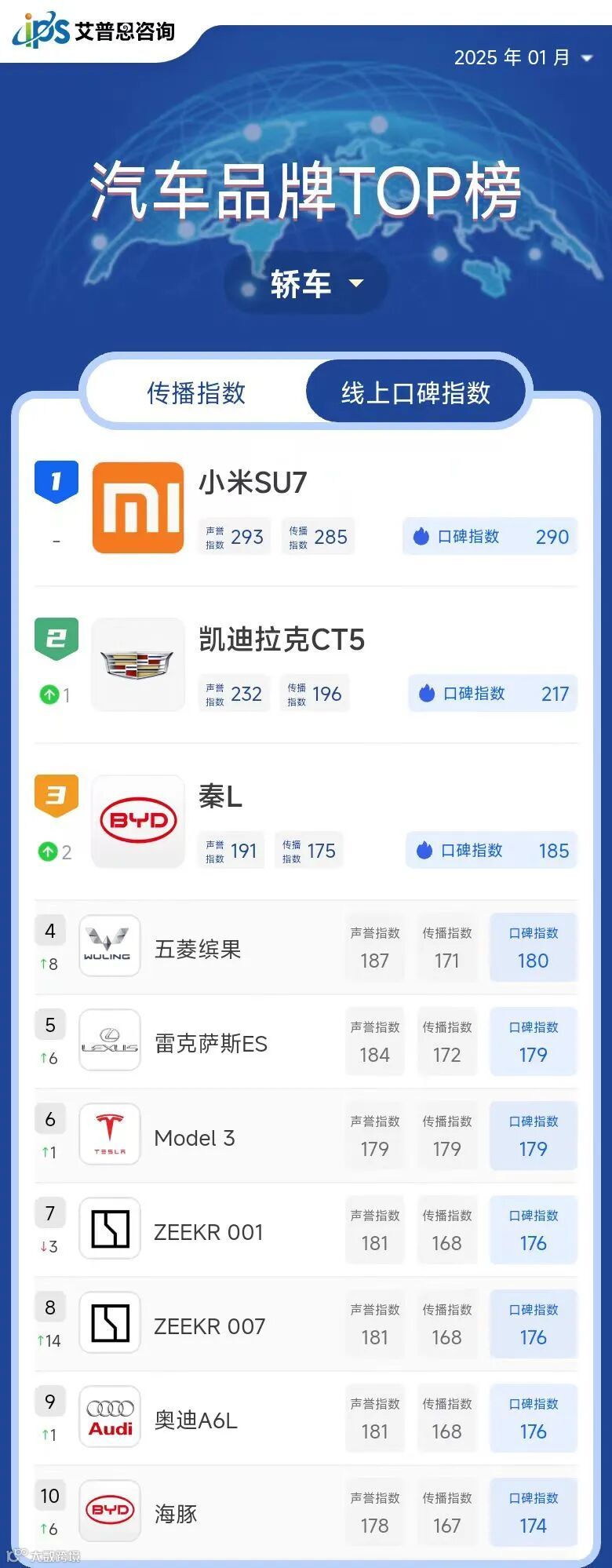 艾普思指数|年榜:2024年中国汽车品牌线上口碑指数TOP50
