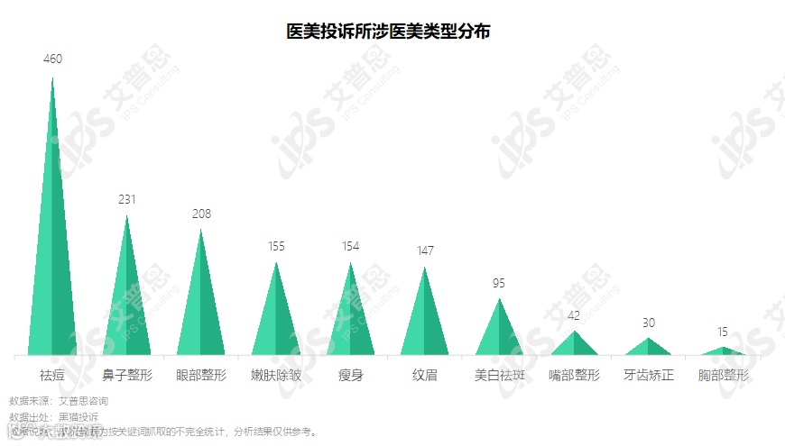 涉诉医美类型:祛痘、鼻子整形、眼部整形相关投诉较多