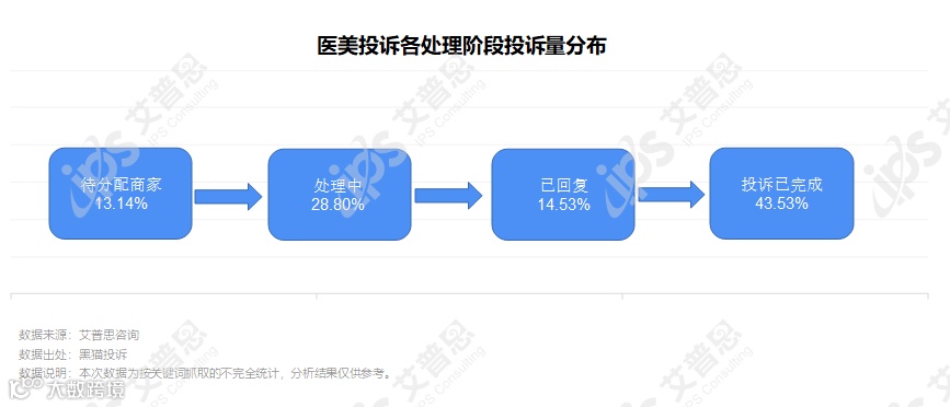 数据源:本报告使用的医美投诉数据采集自黑猫投诉(黑猫投诉平台是新浪旗下消费者服务平台,通过黑猫投诉,消费者的诉求可以得到快速的反馈和专业的指导,从而建立起企业和消费者之间的沟通桥梁);舆情数据来自艾普思自建搜索引擎。
