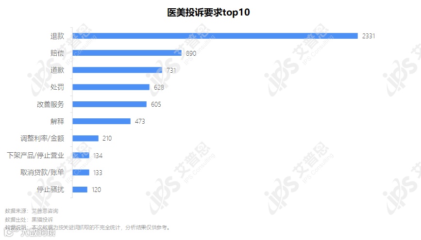 为洞察医美消费者诉求与行业痛点,艾普思咨询分析了黑猫投诉平台上的医美投诉数据,从投诉缘由、投诉要求、被诉机构等多个方面进行解读。