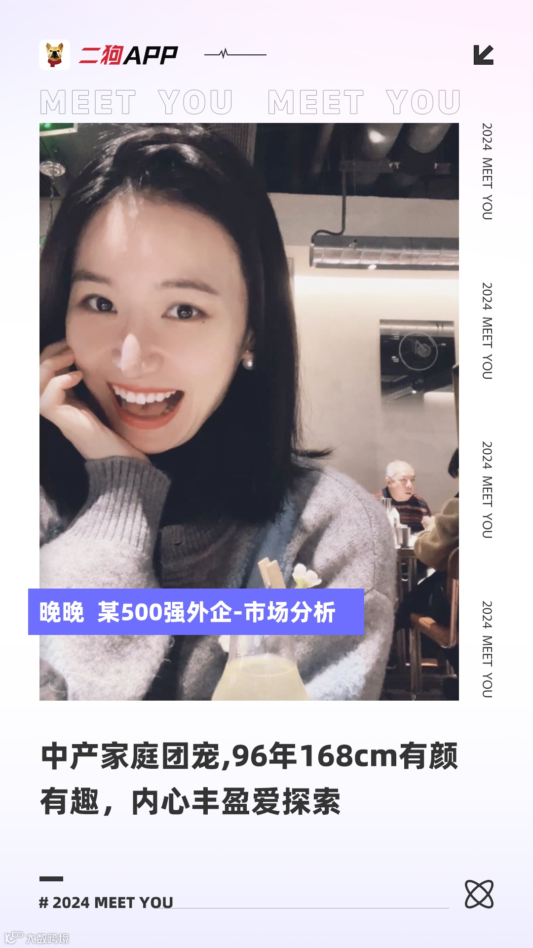 不缺钙不缺爱,来自家庭朋友,被爱的瞬间太多了,更希望能遇见同频的男孩,收获彼此珍贵的心意。