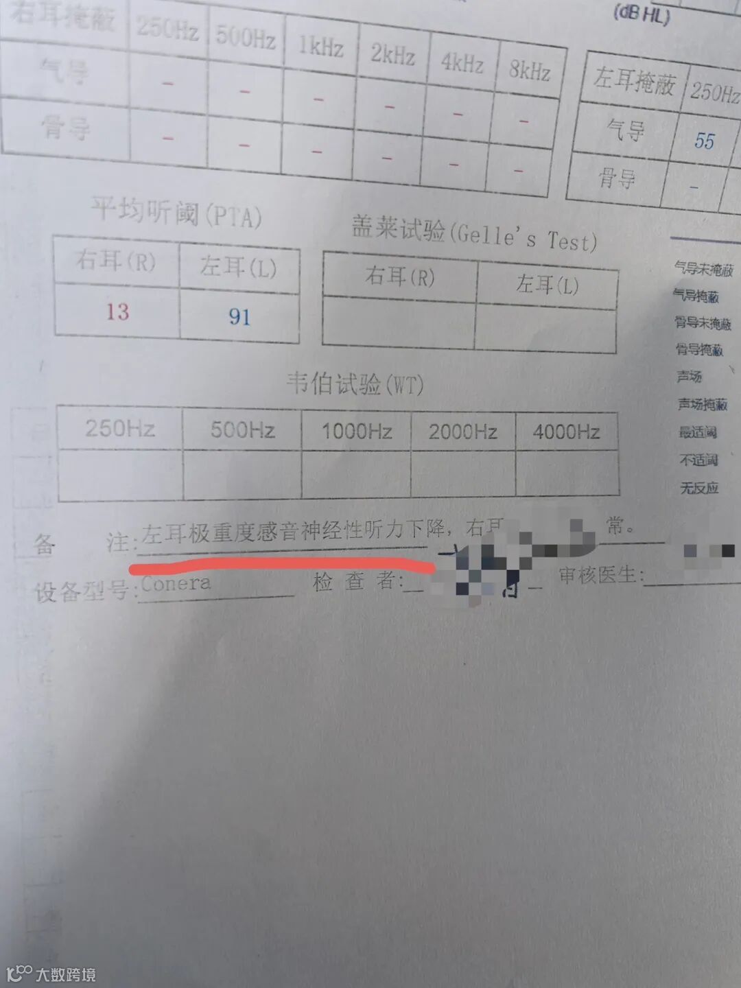 29号来广州检查,结果是“极重度感音神经性听力下降”,换成日常表达就是基本废了的意思吧,印象中医学检查结论里,用“极重度”的情况不多。