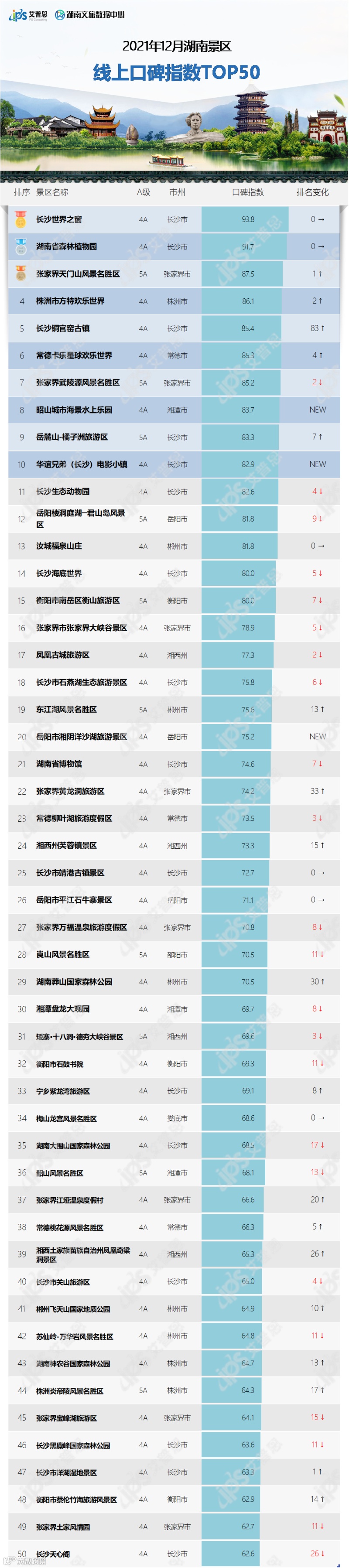 榜单|2021年10月湖南景区线上口碑指数TOP50