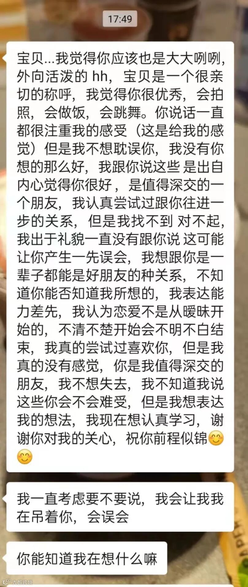 我回复她的时候,心态和语言都是积极 乐观,平和的。只是觉得,前面说,我只想认真学习,而后不到一个月就脱单了。很容易让人感觉对方在同时跟几位男生在发展关系。