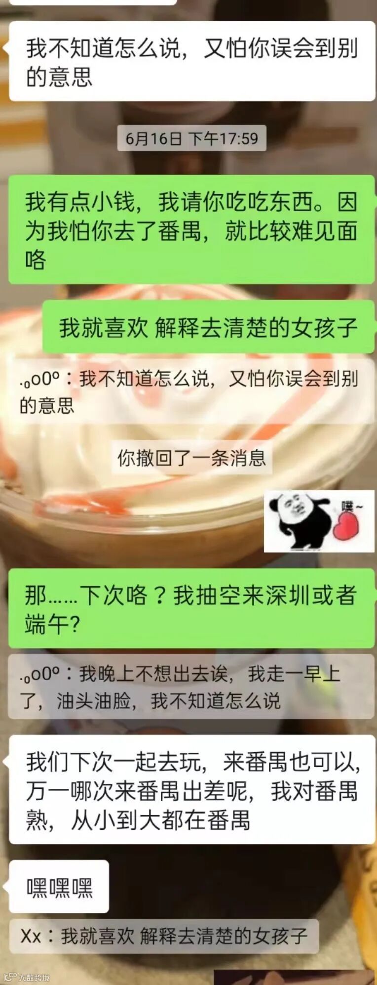 我和女生是去年11月认识的,已经聊了一年了。邀约过三四次,都因故不能出来,给的理由是真实、真性情的。谈不上天天分享,但时不时彼此都有分享。她跟我讲她父母的事情,遇到困难怎么办,烦心事,有趣事。