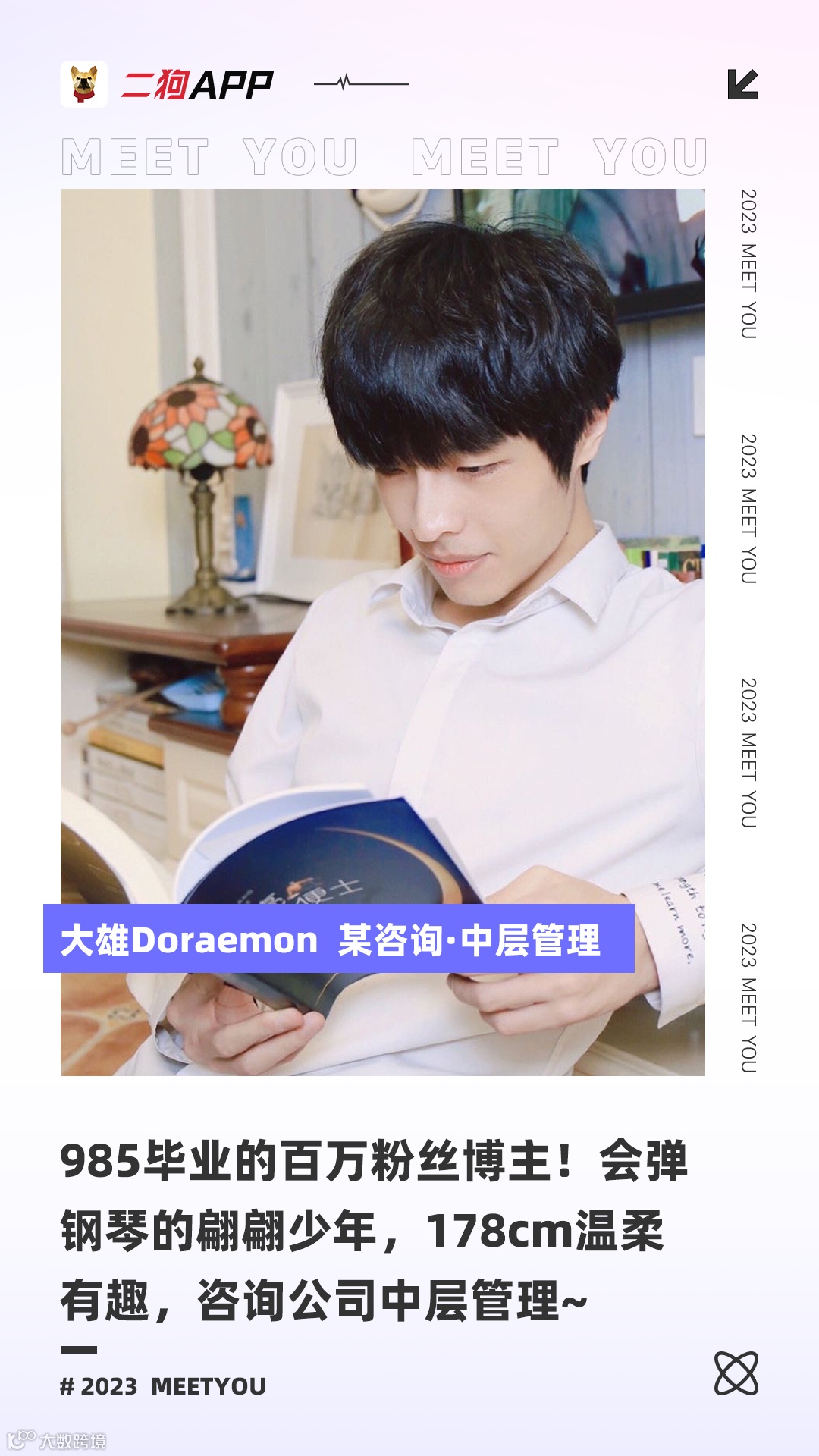 跨过山河大海,也穿越过人海,现在逐渐想趋于稳定,已经定居广州了,有同理心,为人特别好相处的那种,做了七年多的建筑设计师,后来转行进入咨询行业,业余时间做自媒体,钢琴博主,全网有百万粉丝。