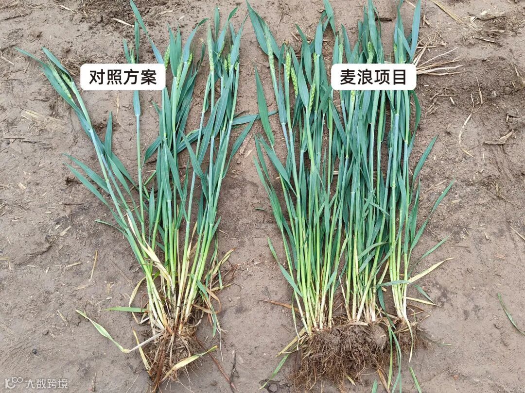 25号上午8点48分,小麦田直播观摩会正式开始,线上线下同时进行。在田间,曹生瑞老师积极为客户和当地农户讲解,麦浪颗粒与小麦一起混播后各个生育期的表现。这片麦田使用麦浪颗粒后,现在小麦呈现出的健康生长的样子,叶片宽厚,茎秆粗壮,韧性强,下部老叶依然黑绿,从上到下无病害,对照使用其他产品方案田块中的小麦有茎基腐病。这次观摩会让大家在田间地头亲眼见证麦浪颗粒在小麦上应用后呈现出来的优异效果。
