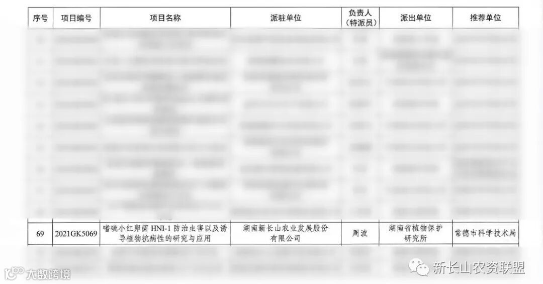 好消息,湖南新长山农业发展股份有限公司在2021年湖南省科技特派员创新项目中立项成功,在未来三年,将携手湖南省植物保护研究所共同研发“嗜硫小红卵菌HNI-1防治虫害以及诱导植物抗病性的研究与应用”项目,项目负责人为周波博士,项目编号“2021GK5069”。