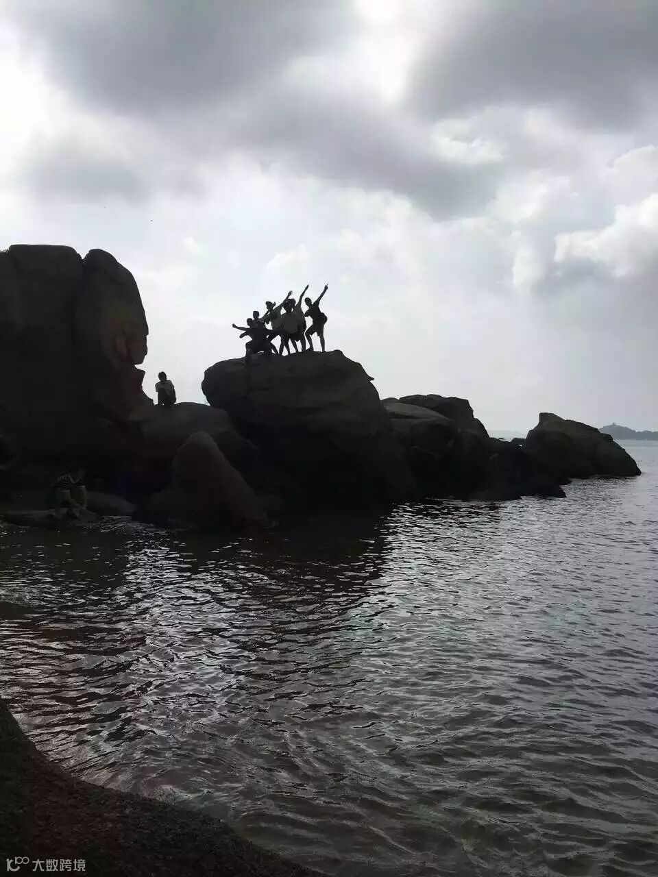 海岸边形态奇特的石群,有鬼斧神工之妙,海浪声,大家的欢呼声,浑然一体,与海亲密接触!