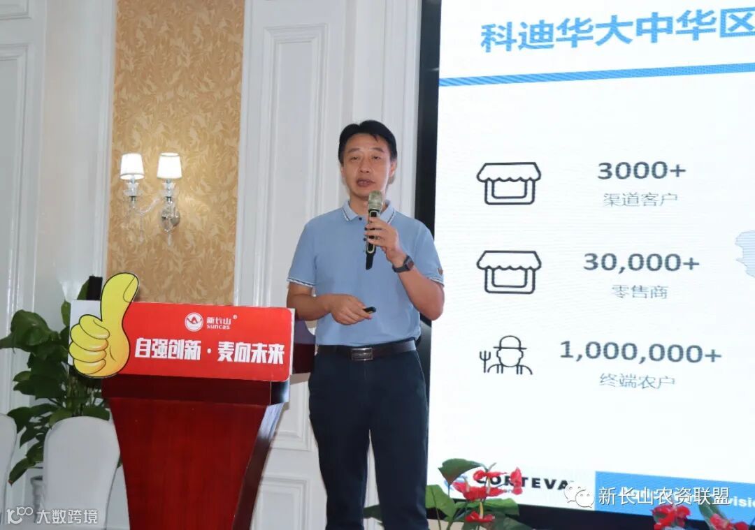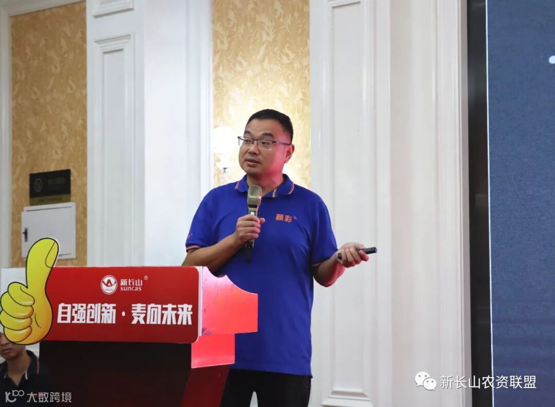 新长山中区总监李安飞先生,就“新长山现状及未来发展”做了简单汇报。李总监提出,2021年在抗性钻卷爆发、原材料暴涨、农产品价格低、新冠的不确定性影响下,新长山实现连续三年大幅增长,这一切归功于合作伙伴的大力支持。未来新长山也将持续坚持以产品差异化和创新应用技术服务为核心,聚焦核心作物及核心市场,深入加强和外企合作,快速完成全国布局,努力成为全国前十的农药企业。