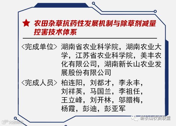 其中新长山与湖南省农科院、农业大学、江苏省农科院、美丰农化合作项目“农田杂草抗药性发展机制与除草剂减量控害技术体系”获得“科技进步奖项”一等奖!