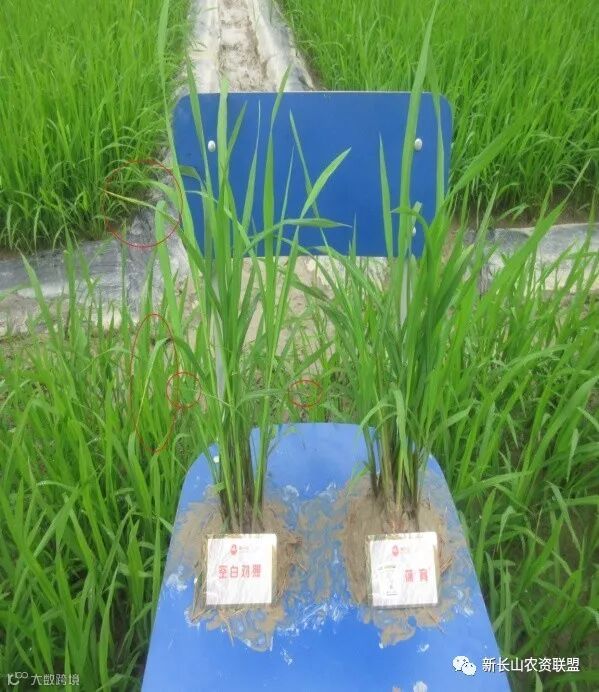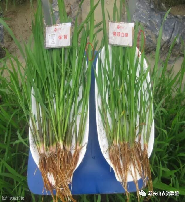 从以上田间图片可以看出,使用新长山“活力稻”之葆育进行拌种的无蓟马,水稻根系生长旺盛,分蘖早;
