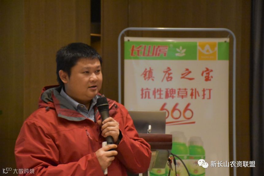 首先遗憾新长山2018年666、999等产品没有上市,因为很多种植户因为很多药剂的抗性问题导致毁田,都在寻找我们的试验药666和999。当自己和新长山业务经理袁家辉一起到田间搞定齐人高稗草的时候,内心是无比激动的,希望在坐的各位能够抓住这几个产品的机会,给更多种植户解决问题。