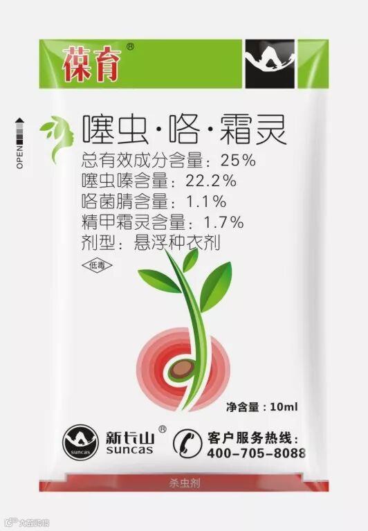 2、利用效率高,药效期较长。种衣剂紧贴种子外表面,形成一层保护膜,药力集中包裹在种子周围,不易受外界环境影响,使周围害虫难以生存,不需其他药剂就能达到很好的防治、保苗效果,利用效率较高,药效缓慢释放,提高了药效期;