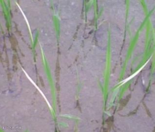 六是除草剂药害,如有些除草剂施用后会使禾苗产生药害而出现白化的现象,但是此种现象出现后,如果药害不是很严重,后期禾苗可自行恢复正常生长。