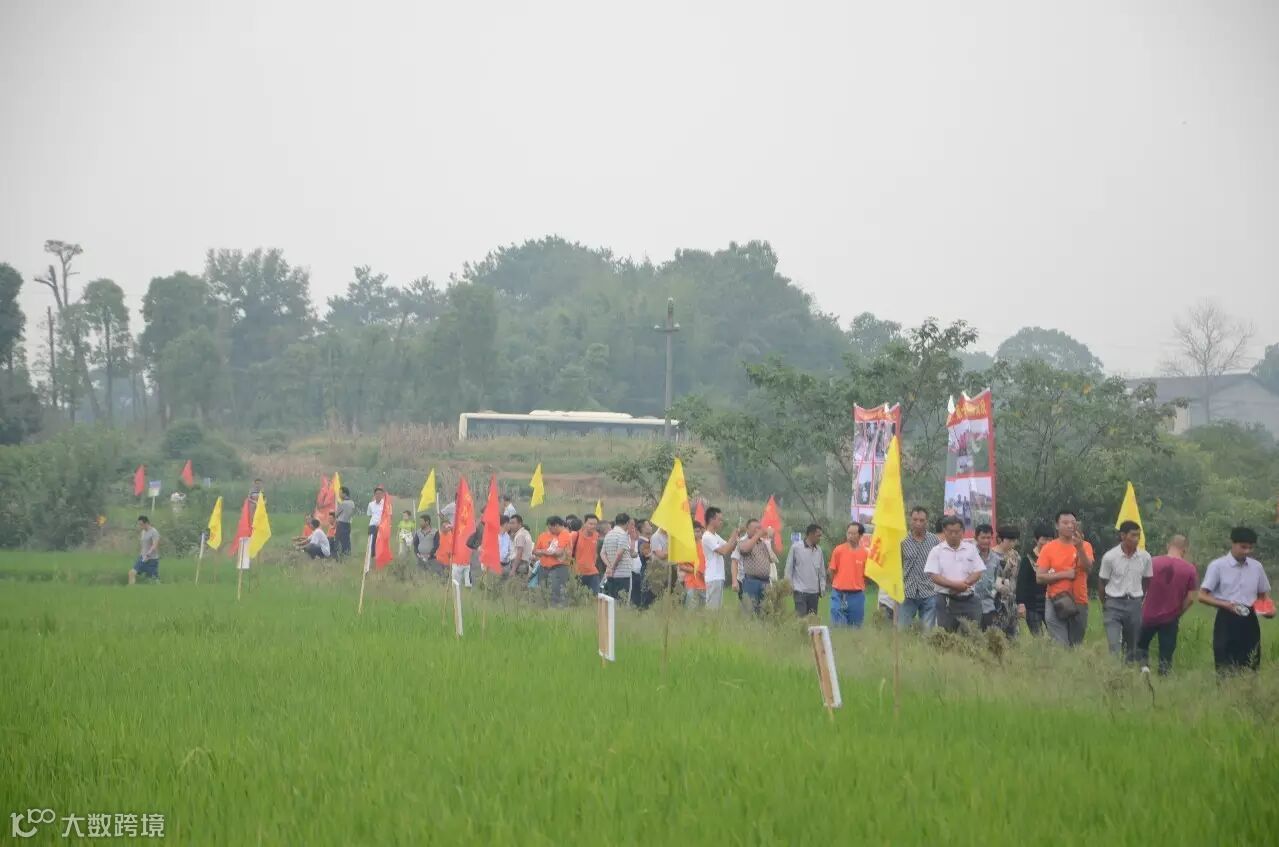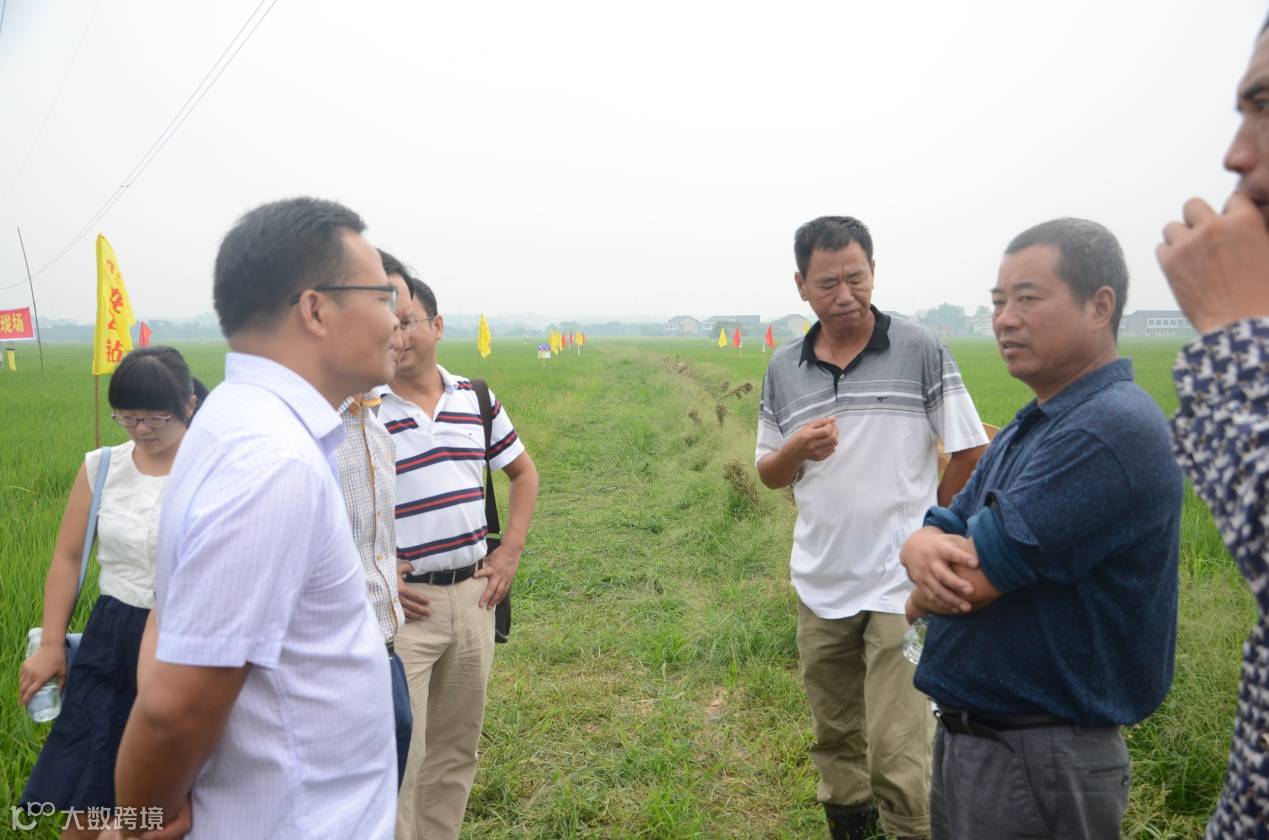 一百多名农资经销商和种植大户前往示范田观摩“龙飞钻”和“第一钻”防治抗性钻心虫效果。