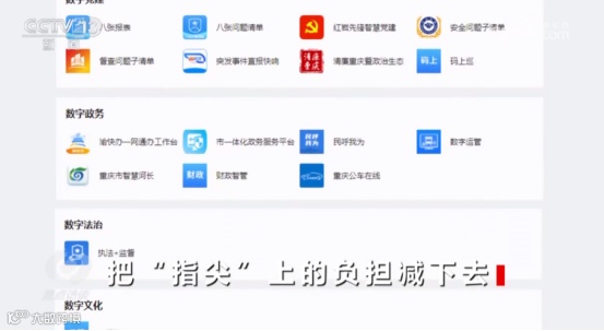 工作重心向基层服务转变,才能切实看到为基层减负的实效。2021年,重庆市一体化、智能化、数字化政务工作平台“渝快政”正式发布。“渝快政”在全市范围内实现了上下层级、横向跨部门之间的协同,一个“渝快政”App就可以支持过去40多项高频次的政务办公应用,过去各部门App的相应功能、各种工作群都整合在了“渝快政”一个App里面。一表通、“141”基层智治平台也已经接入了“渝快政”,正在向全市推广。现在,文勇手机里的53个工作群已经解散,郝欢手机里十几个部门App也已经被整合到“渝快政”。
