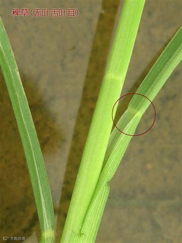三、稗子。无叶舌无叶耳。(光秃秃的)