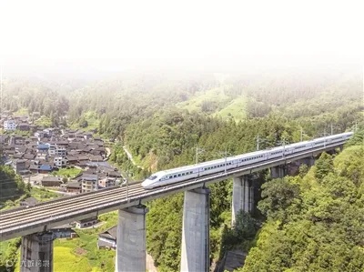 一列高铁行驶在贵州省黔东南苗族侗族自治州从江县境内。图片来源:视觉中国