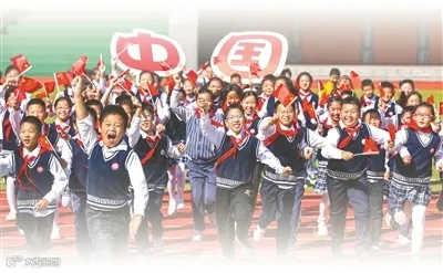 江苏省淮安市生态文旅区沁春路小学开展“美好祝福献祖国”活动,庆祝新中国成立75周年。图片来源:视觉中国