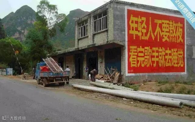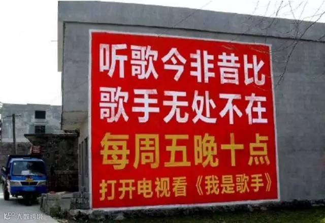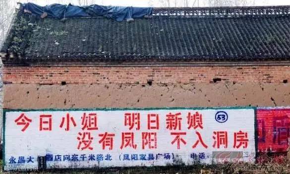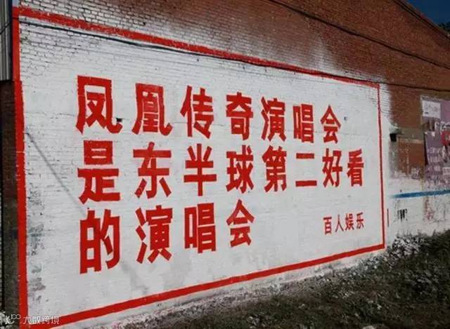 凤凰传奇每次的宣传都会在刷墙广告上大做文章,把脑洞大开的广告语植入到村头田间: