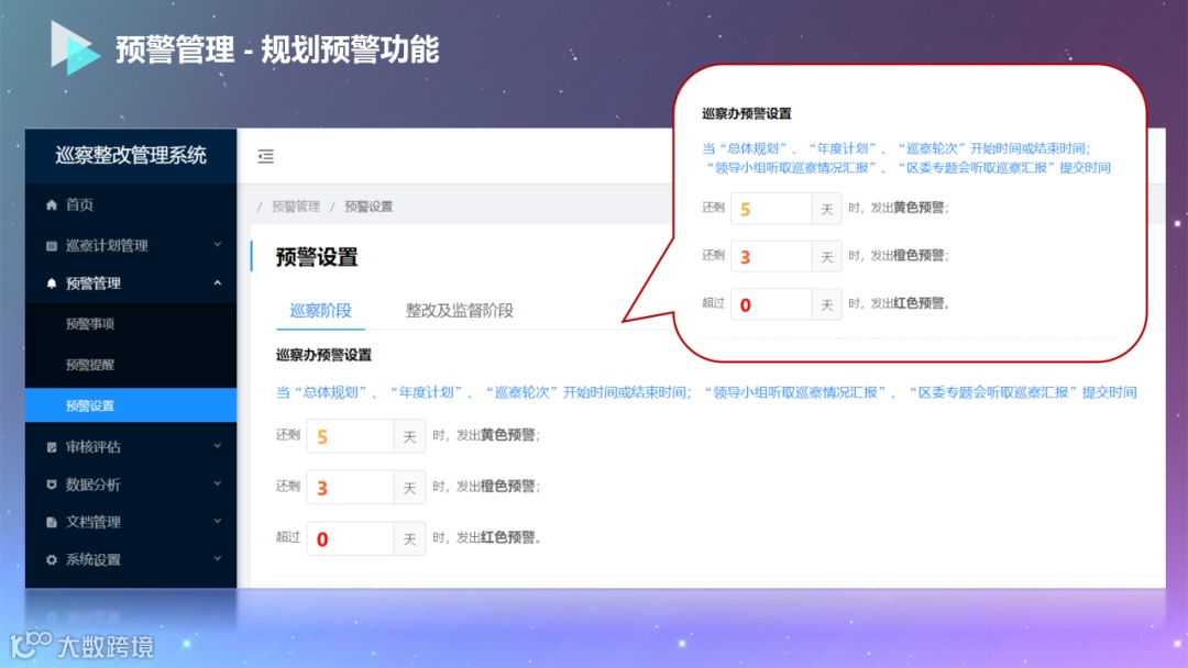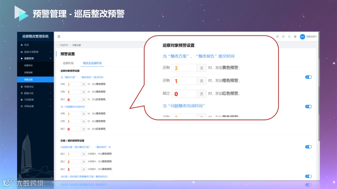 巡后整改预警(主要向被巡察单位和区纪委、区委组织部日常监督部门预警)。